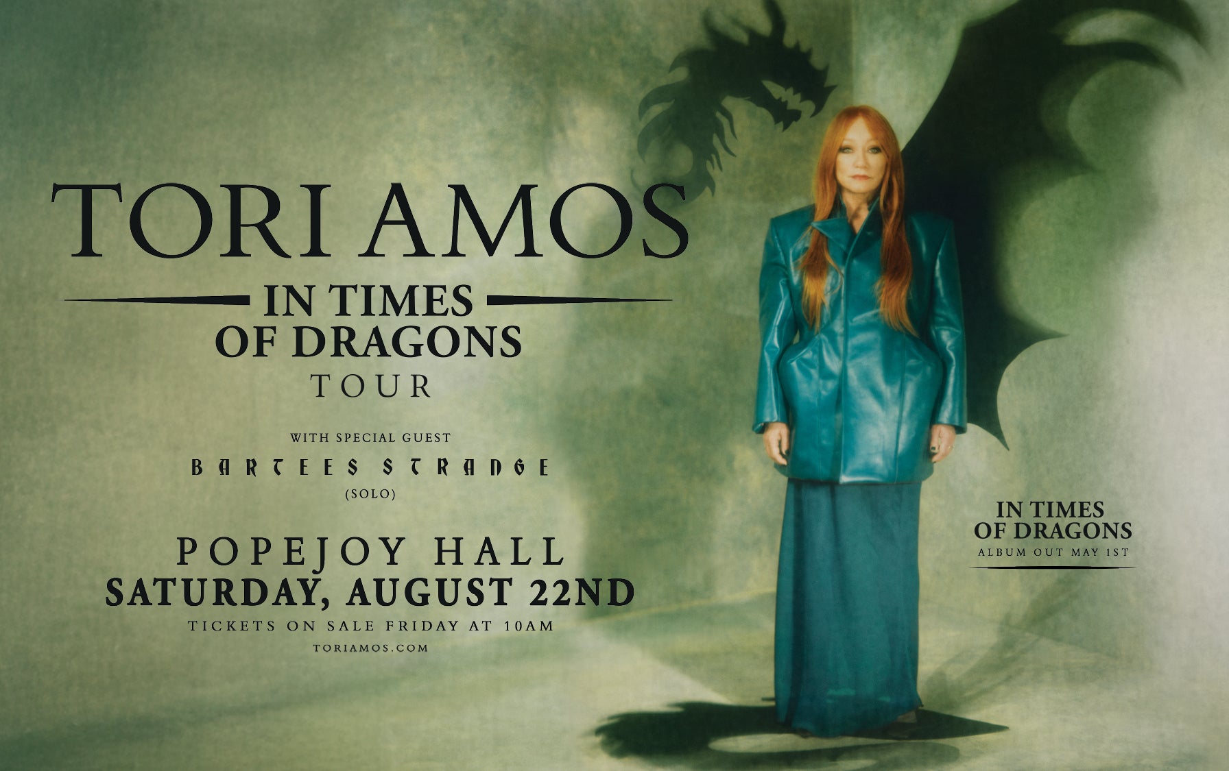 Tori will support the album with an extensive 35-date U.S. summer tour. The live shows will see Tori joined once again by longtime collaborators Jon Evans (MD and bass) and Ash Soan (drums) plus the addition of three backing singers - Liv Gibson, Deni Hlavinka and Hadley Kennary to will perform songs from In Times of Dragons alongside highlights from across her illustrious 35-year career, which has seen eight Grammy nominations and over 12 million global album sales.